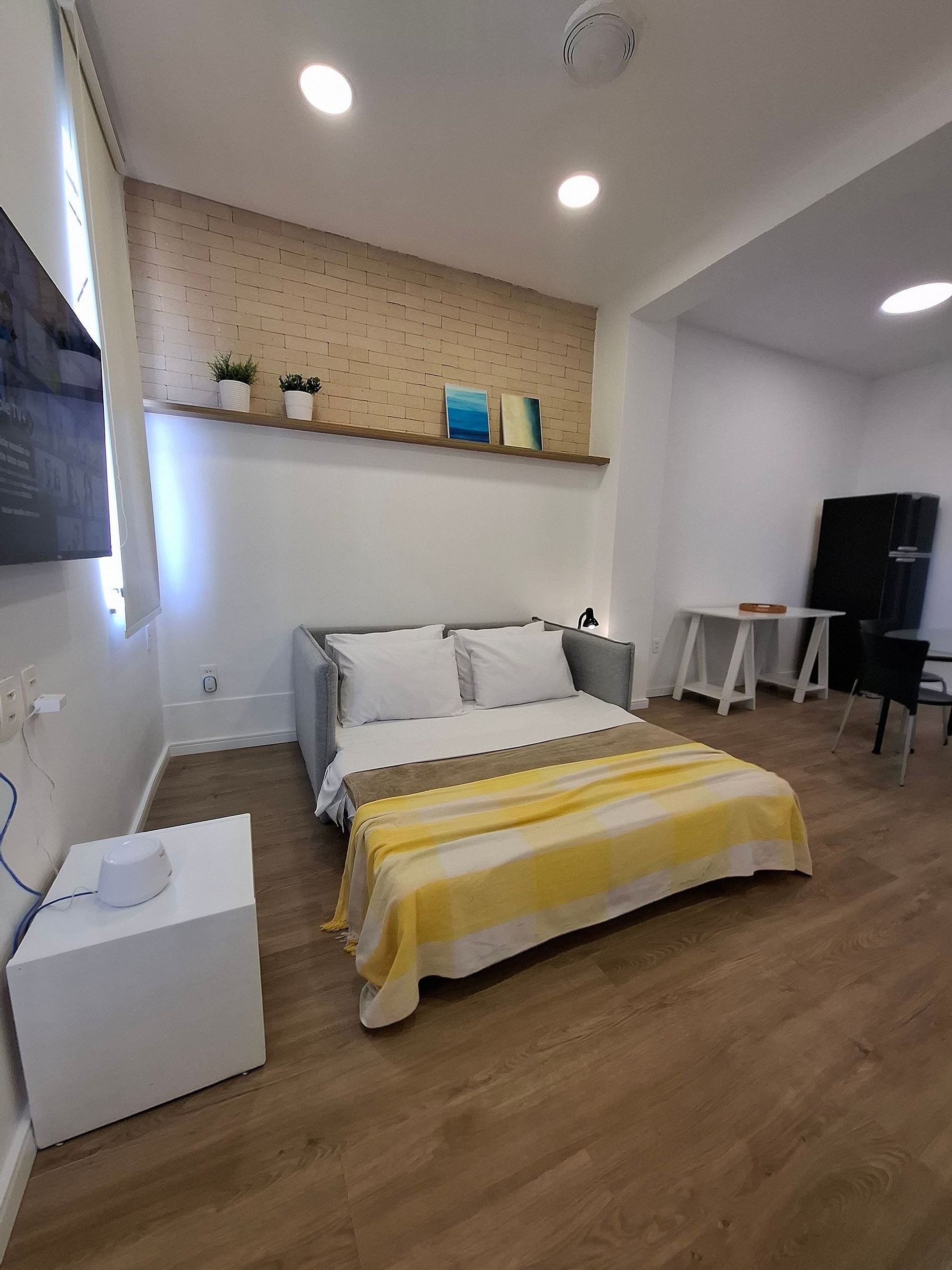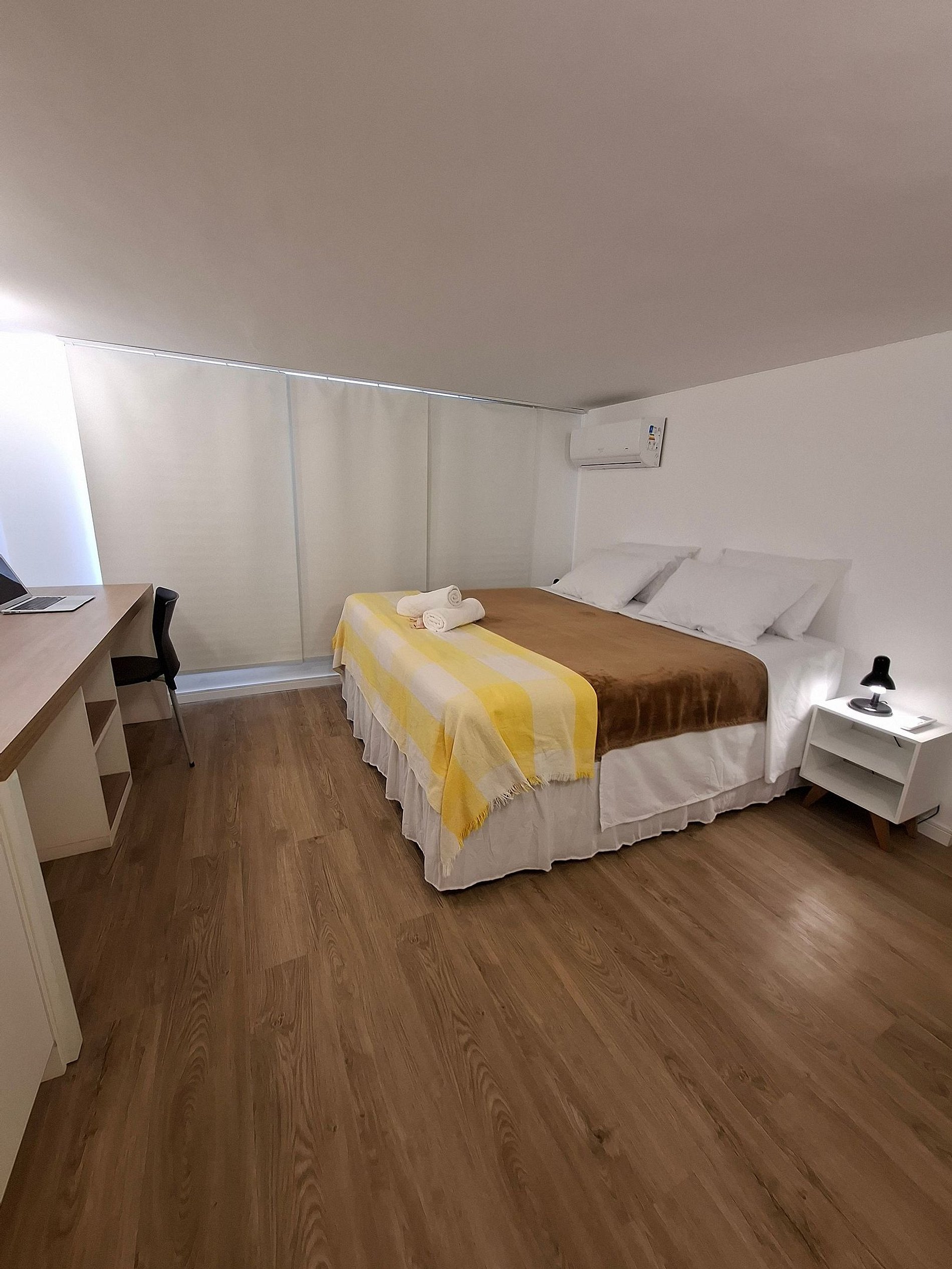 La decoración es moderna y minimalista, ofreciendo comodidad tanto para el ocio como para el trabajo. La suite es acogedora y la sala cuenta con un sofá cama doble, ideal para alojar hasta dos niños o huéspedes adicionales.