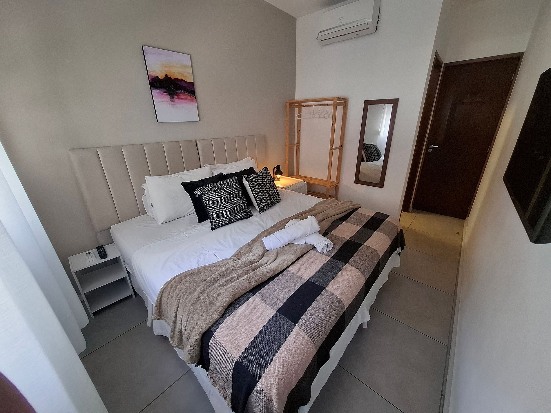 Suítes Modernas e Funcionais – Equipadas com ar-condicionado split, Smart TVs, paredes anti-ruído e persiana blackout, garantindo conforto e tranquilidade.